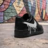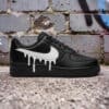 Stylish black Air Force 1 sneakers featuring a hand-painted white drip design, perfect for streetwear and sneaker enthusiasts.